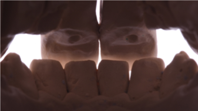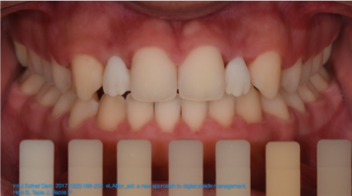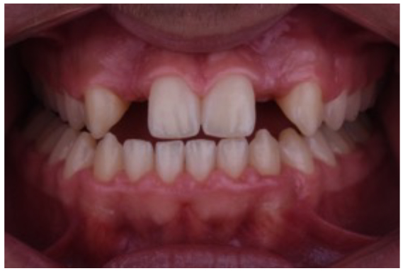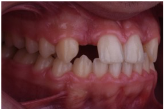 1. After orthodontic treatment, the patient was referred for restorative treatment. Initial intra end extraoral, static and dynamic occlusion check images below. (Figures 1-4)