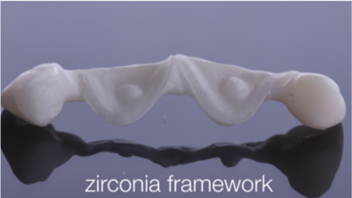 3. Framework is made of LT high strength Zirconia (ZirCAD, Ivoclar Vivadent), intraoral trial is essential for fit check and its position related to natural hard and soft tissues. (Figure 8, 9, 10) Adequate shade selection is essential for straight forward workflow. Use of polarized filters in dental photography give possibility to determine value of the color. (Figure 11)
