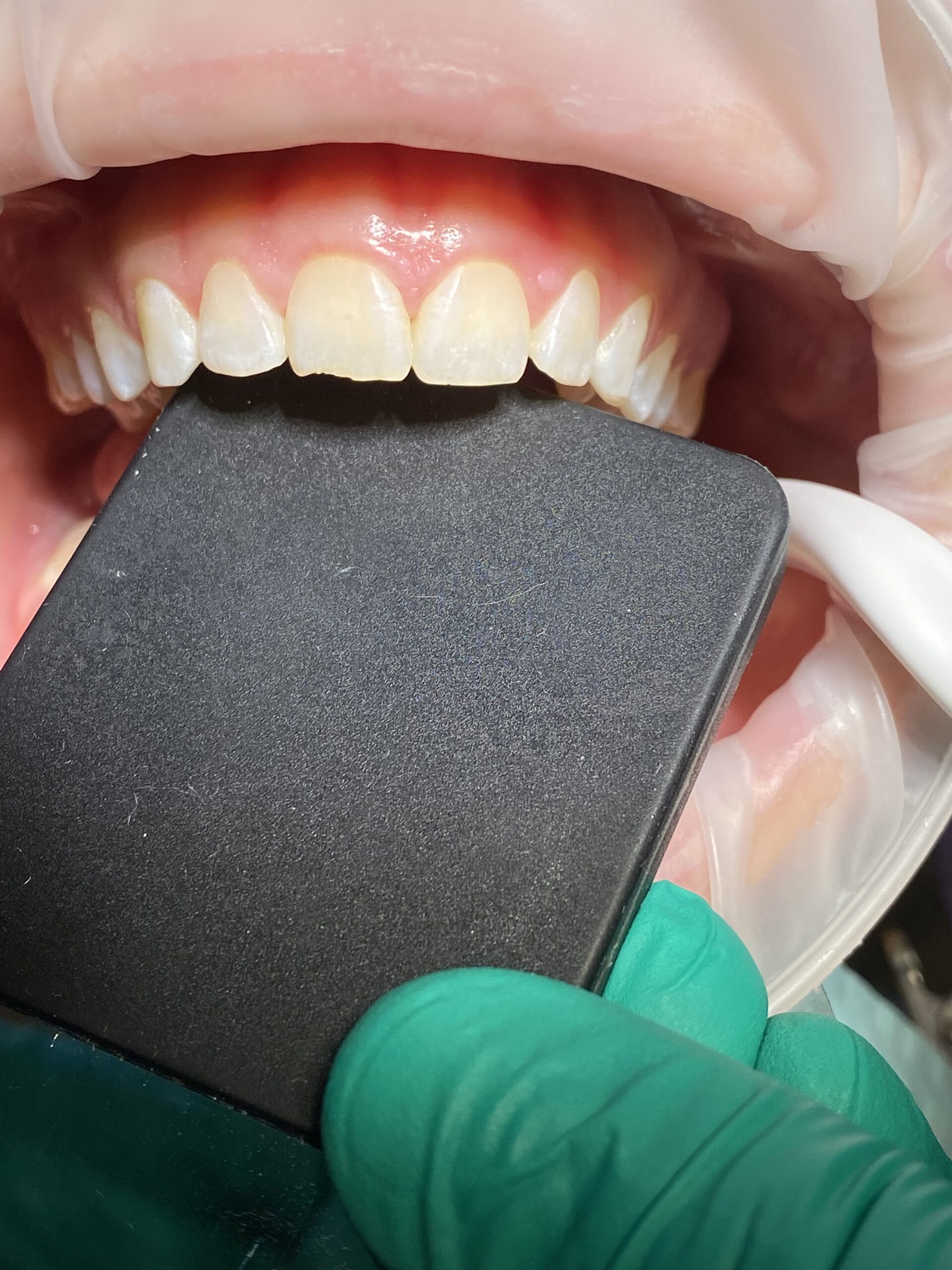 The patient presented with a recurrent chip on the incisal-labial-facial (ILF) surfaces of tooth #8. DMG America’s Ecosite Elements universal nanohybrid restorative composite was selected as the restorative material, utilizing both the Pure Body Shade A1 and the Layer Enamel Medium Shade to achieve an optimal esthetic outcome.